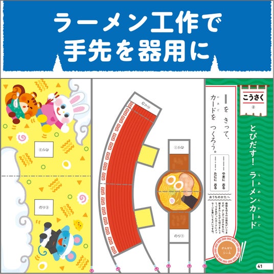 ラーメンがたくさん登場する楽しさに引き込まれながら、もじ・かず・ちえ・こうさくの4ジャンルに自然と触れられる『ラーメンドリル』。「つぎもやる!」につながる工夫が詰まっています。少しずつ新しいことに挑戦したくなるこの季節。