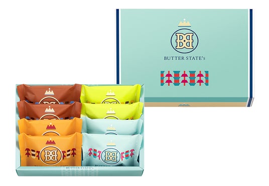 究極のバターリッチクッキー『バターステイツクッキー THEバターリッチ』に、バターと相性の良い素材を練り合わせたフレーバーも充実!甘く温かみのあるメープルの香りを、バターのコクと合わせた季節限定の“メープルバター”、芳醇なココア香る“ショコラバター”、風味豊かな“ピスタチオバター”。定番から季節味まで、豊富な4味が楽しめる詰合せです。