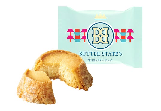 『バターステイツクッキー THEバターリッチ』のメインテーマは、“溢れるバター体験”。本品は、なんと全体の3分の1以上がバター!バター含有率34%を誇る究極のバターリッチクッキーです。高配合バター生地を最良のポイントで焼き止める、独自の“バターなだれとろけ製法”により、王冠のような形のクッキーが出来上がります。たっぷりと練り込んだバターが生地に染み込むことで生まれる、濃厚な味わいと香ばしさをお楽しみください。