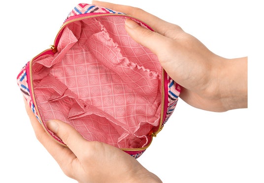 バターホイップショコラサンドの可愛らしいパッケージデザインが、オリジナルポーチになりました。ガバッと開いて中が見えやすく、仕切りがあるのも嬉しいポイント。乾燥対策で小物が増える冬の季節に、便利なこと間違いなしです!