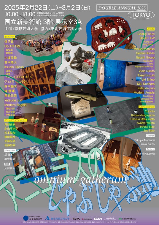 学校法人瓜生山学園 京都芸術大学(京都市左京区/学長 吉川左紀子)と東北芸術工科大学(山形市上桜田/学長 中山ダイスケ) の学生選抜展「DOUBLE ANNUAL2025 アニュラスのじゃぶじゃぶ池/omnium-gatherum」を2025年2月22日(土)~3月2日(日)に国立新美術館で開催します。堤拓也・慶野結香の2名のディレクターと、監修に片岡真実(森美術館館長)を迎えて展覧会をつくりあげます。