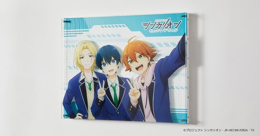 大成 タイセイ、フォールデン アカネ、九頭竜 リョータの3人が自撮りをする青春の一瞬を、奥行きを活かした立体的なアートボードで再現しました。