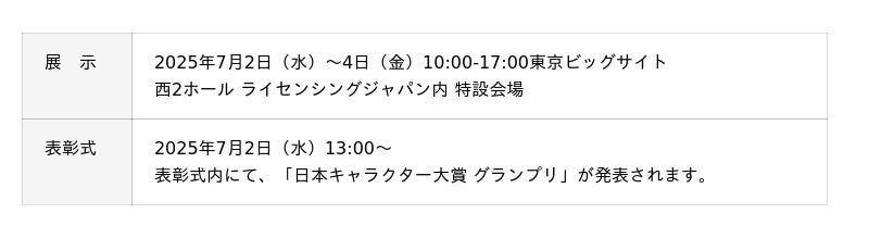 日本キャラクター大賞2025展示・表彰式概要はこちら
