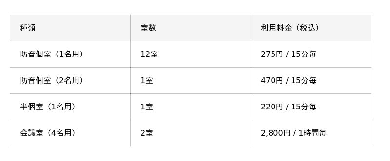 3.ご予約いただいた部屋にて、終了時間までご利用いただけます。