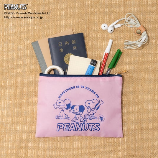 『ESSE』2025年9月号(8月1日発売)特装版の付録に、「PEANUTS」コミック誕生75周年を記念して各年代のスヌーピーが描かれた「スヌーピー トラベルポーチ 2点セット」が登場!