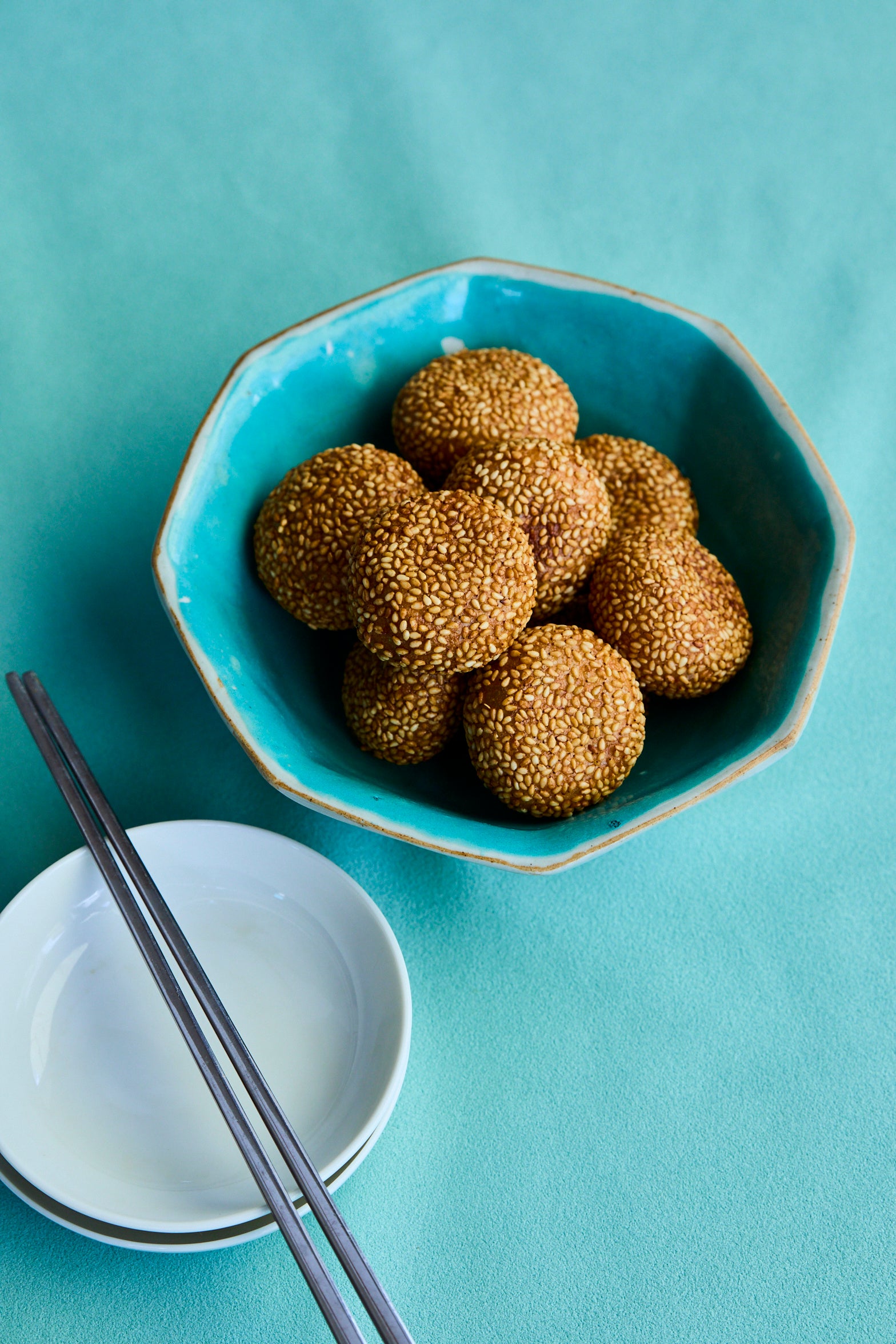 外側にも中のあんにもゴマたっぷりで香ばしい。もっちり生地がたまらない「お豆腐ゴマだんご」