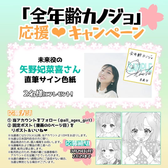 株式会社ディー・エル・イー(本社:東京都千代田区、代表取締役社長執行役員CEO:星 秀雄 以下DLE)は、様々な年齢に変化してしまう呪いにかかった彼女とのドタバタラブコメを描いたマンガ『全年齢カノジョ』の1話をSNSの「X」にて公開したことをお知らせします。