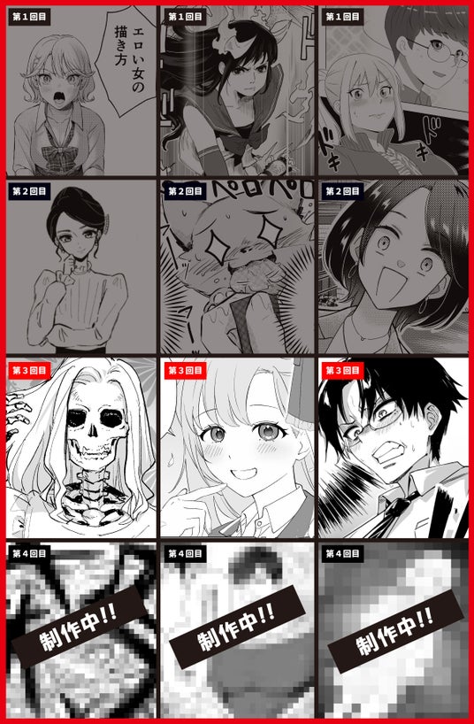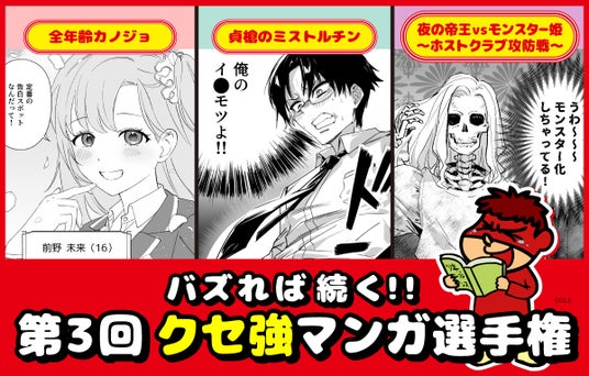 本選手権では「漫画家にエッチな女の子の描き方を教わるギャル」や「男性教師の靴の裏が気になってしょうがない女子高生」などキャラクターにクセがある作品を制作。その1話のみをSNSの「X」に投稿し、各回最も人気があり(いいね+リポストの合計)、かつ、リポストかいいねのどちらかが1,000以上の作品を勝者として2話以降も継続します。合計4回選手権を実施し、全部で12作品以上の公開を予定しています。