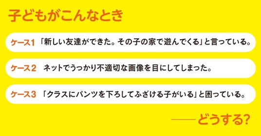 【ケース3】必ず言うべきことは、「話してくれてありがとう」です。プライベートパーツにまつわる出来事を報告してくれたときには、まず感謝を表し、勇気をたたえます。先生への報告は、その後です。報告の際も、自分ひとりでよいのか、親に一緒にいてほしいのか、お子さんの希望を聞いて進めましょう。