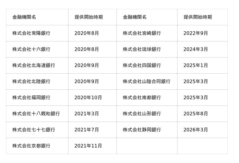 なお、2020年8月に本サービスの提供を開始してから、日本全国で計15行の地域金融機関との提携に至りました。提携先は今後も順次拡大していく予定です。