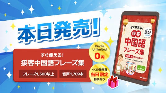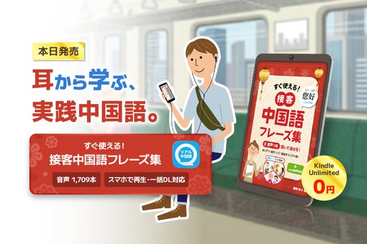 音声1709本つきKindle本「接客中国語フレーズ集」本日発売。50万人利用アプリの著者が贈る“耳で学べる”実用書