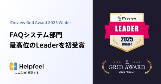 検索型AI-FAQのHelpfeel、「ITreview Grid Award 2025 Winter」で最高位となる「Leader」を初受賞