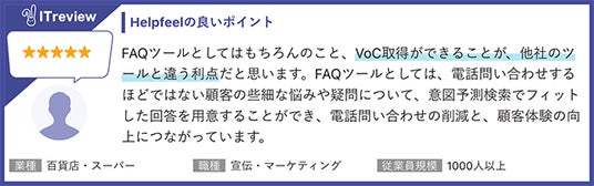 FAQツールとしてはもちろんのこと、VoC取得ができることが、他社のツールと違う利点だと思います。
