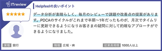 データ分析が素晴らしく、毎月のレビューで課題や改善点の提案があります。