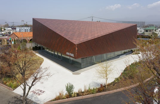 JINS創業の地、群馬県前橋市にある地域コミュニティのハブとなることを目指した施設「JINS PARK(ジンズ パーク)」。アイウエアブランド「JINS」と、飲食事業として展開するベーカリーカフェ「エブリパン」の店舗を施設内に併設。誰もが自由に使用できる屋外広場や、施設内にも大階段や屋上テラスなど広々とした空間を設けることで、地域に新しい交流が生まれる場をつくるなど、JINSが地域と共生することを目指した店舗形態です。