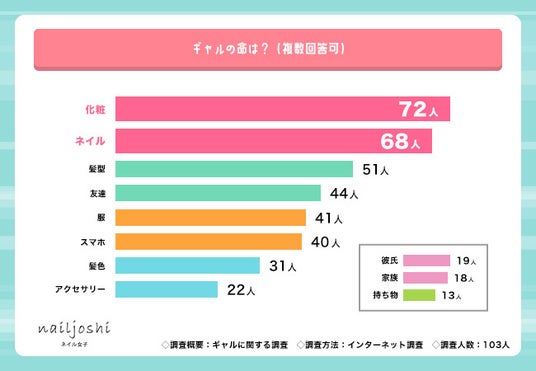 ・ギャルが大切にしていることは「化粧」が1位、僅差で「ネイル」が2位