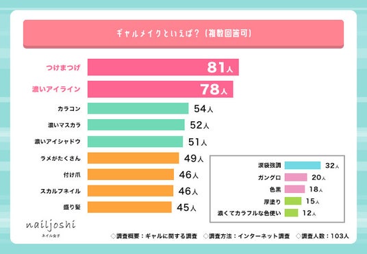 ・ギャルメイクの象徴は「つけまつげ」が最多、次いで「濃いアイライン」