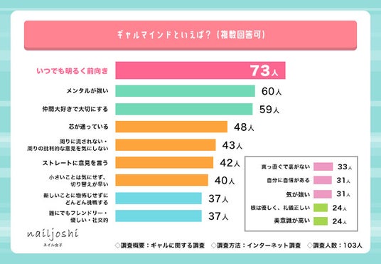 ギャルマインドは「いつでも明るく前向き」が最多回答数