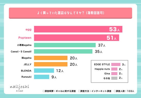 ・ギャルがよく買っていた雑誌は「egg」が1位、僅差で「Popteen」が2位