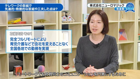デザインの力(※1)で顧客のパーパス実現を支援する株式会社ニューロマジック(本社:東京都中央区、代表取締役社長CEO:黒井 基晴)は昨年「第4回TOKYOテレワークアワード 推進賞」を受賞いたしました。このたび、東京都の公式YouTubeチャンネルにて当社の取り組みに関する動画が公開となりました。今後も誰もが働きやすく、能力を発揮できる環境づくりを整備します。