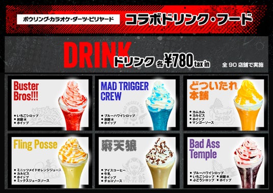全国のボウリングとカラオケ90店舗でコラボメニューを、販売いたします。