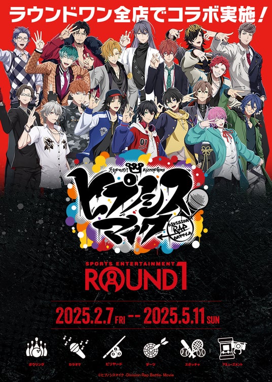 株式会社ラウンドワンジャパン(本社:大阪府大阪市、代表取締役社長:川口 英嗣)は、この度、2025年2月7日(金)~2025年5月11日(日)の期間、「映画『ヒプノシスマイク -Division Rap Battle-』×ROUND1 コラボキャンペーン」を実施いたします。
