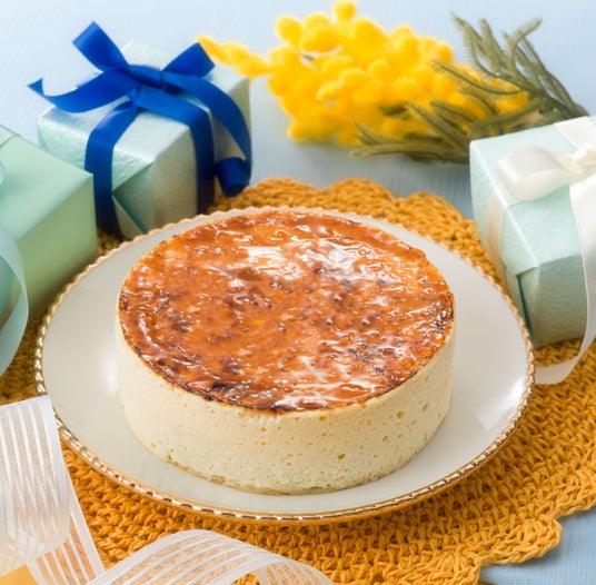 食べた瞬間、口いっぱいにバニラの香りが広がります。また、上層は軽やかなイタリアンメレンゲのシブーストでなめらかな柔らかさが感じられます。下層はベイクドチーズケーキで濃厚な味わいがじっくりと口の中に溶け出します。一口で違った食感と味わいが楽しめる、「一口で2度美味しい」チーズケーキ。