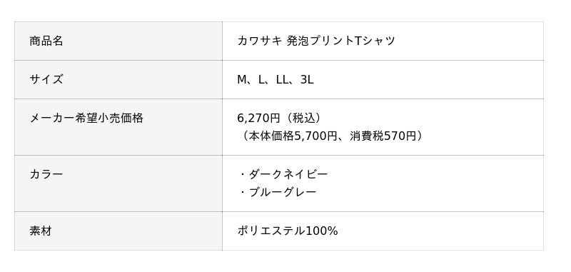 株式会社カワサキモータースジャパン(本社:兵庫県明石市、代表取締役社長:佐伯 健児)は、2025年6月27日(金)から2025年8月31日(日)までの期間中、全国のカワサキプラザ店頭で対象のTシャツ(ロンTを含む)・ポロシャツを2枚以上をご購入いただいた方に、ノベルティーをプレゼントする"カワサキプラザTシャツフェア"を開催します。