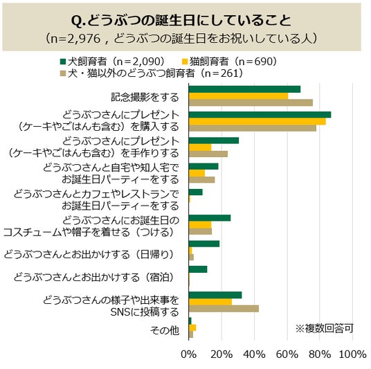 8割以上の飼い主様がわが子の誕生日祝いを実施。プレゼントや記念撮影が中心