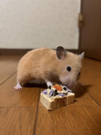 キンクマハムスターのくまちゃん1歳のお誕生日です!くまちゃんの大好きなものを詰め込んだケーキです。
