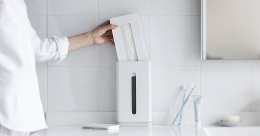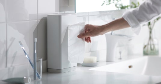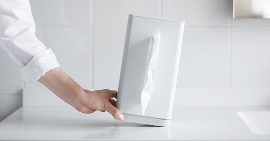 今回発売となる吸盤「REPITA」を装着した「ティッシュケース」は、吸盤でしっかり固定されるので、片手でさっとティッシュを引き出せます。詰め替えは、上部のフタを外して入れるだけ。ボックスティッシュがそのまま入れられます。吸盤部分に触れると簡単に外せるので、周りをお掃除したい時も簡単です。縦置きのため、スペースに余裕がない場所にもすっきり置けます。リビング・寝室・キッチン・洗面台など、さまざまな場所でお使いいただけます。
