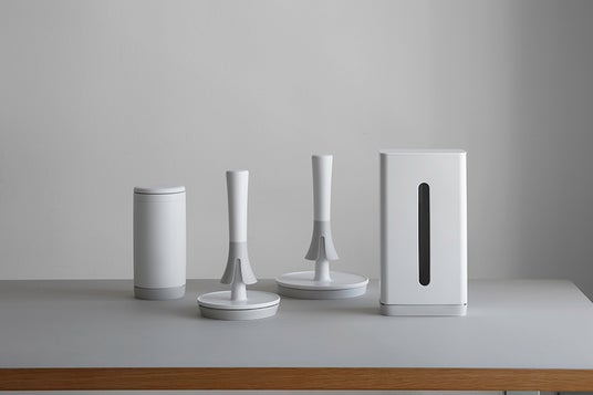 吸盤「REPITA」を装着したアイテム(左よりウェットティッシュケース、キッチンペーパーホルダー M/L、ティッシュケース)