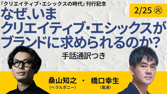 発売に先立ち、2月15日(土)より青山ブックセンター本店にて、書籍の先行販売および著者による選書フェアを開始します。また、出版記念トークとして、ヘラルボニーのクリエイティブディレクター桑山知之氏をお招きしたトークイベント「なぜ、いまクリエイティブ・エシックスがブランドに求められるのか?(手話通訳つき)」を2月25日(火)19時より実施します。