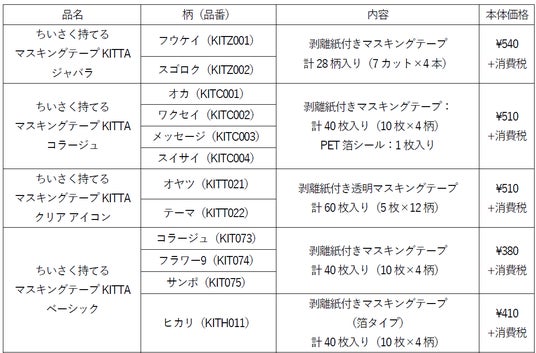 「KITTA(キッタ)」は、マスキングテープがロール形状でかさばってしまい、複数のテープを同時に持ち歩きづらいといった不満点に着目して開発された、新しい形のマスキングテープです。2016年6月の発売以来、シリーズ累計販売冊数は450万冊を突破し、ユーザーの皆様に好評をいただいています。