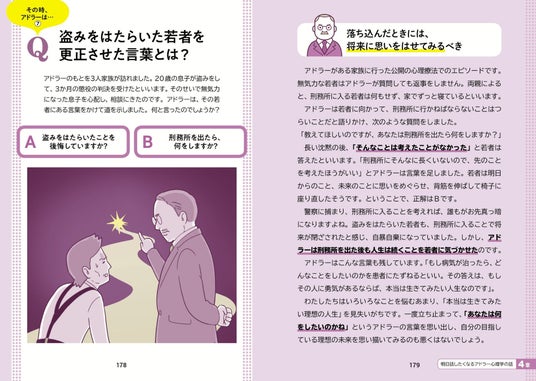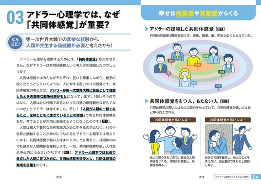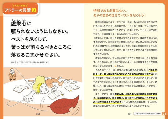 アドラー心理学は、「勇気の心理学」とも呼ばれ、自己成長や人間関係の改善に役立つ実践的な知識として注目されています。本書では、アドラーの提唱する「目的論」「課題の分離」「共同体感覚」などの考え方を、誰でも理解しやすいようにていねいに解説。