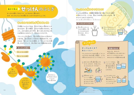 また、きらきら光る箔押しの装丁は、プレゼントにもぴったり。アイスクリームの作り方、虹の作り方など、夏休みの自由研究のヒントもいっぱいです。