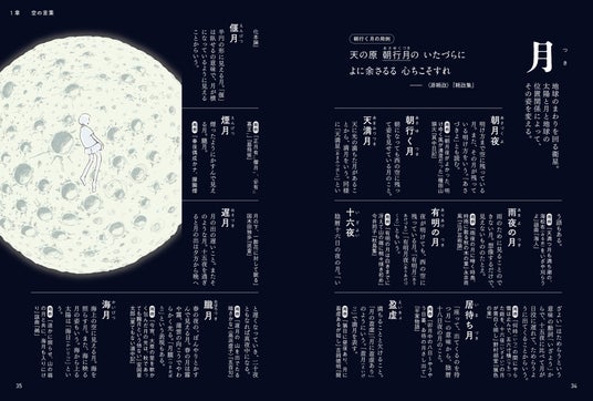 たとえば、「月」に関する言葉だけでも60語以上を収録。明け方まで空に残っている月を表す「朝月夜(あさづくよ/あさづきよ)」、半分またはそれ以上欠けている月を表す「片割月(かたわれづき)」など。