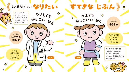 まずは、ゲームのなかで「なりたいじぶん」を設定! 「こんなふうになりたい」をという気持ちを出発点にするから、自分の頭で考えて読み進めることができます。