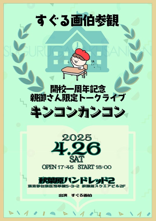 この度、吉本興業所属の大人気イラストレーター・すぐる画伯が、ファンクラブ開設一周年を記念したトークライブ『キンコンカンコン』を4月26日(土) 秋葉原ハンドレッド2にて開催することが決定いたしました。