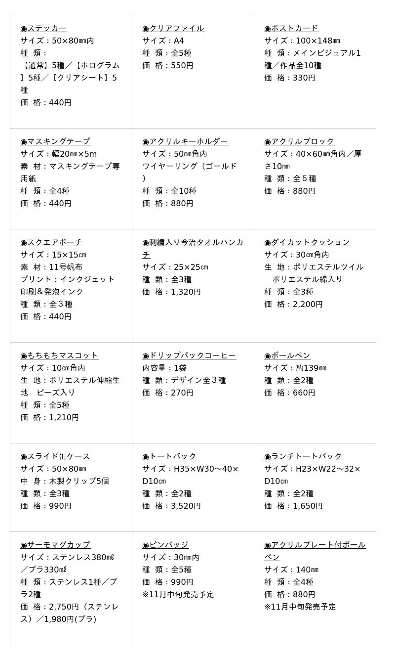 ※10月17日(金)、18日(土)は入館日当日のスペシャルプレビューDAYチケットをお持ちの方に限り、グッズコーナー、コラボカフェのご利用が可能となります。(コラボカフェはイートインのみ)