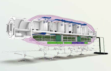 で生活できる滞在モジュールの内部設計、 設備設計、 高密度緑化(植栽) 計画を担っています。