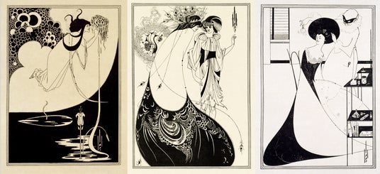 左:オーブリー・ビアズリー《クライマックス》1893年、ヴィクトリア・アンド・アルバート博物館