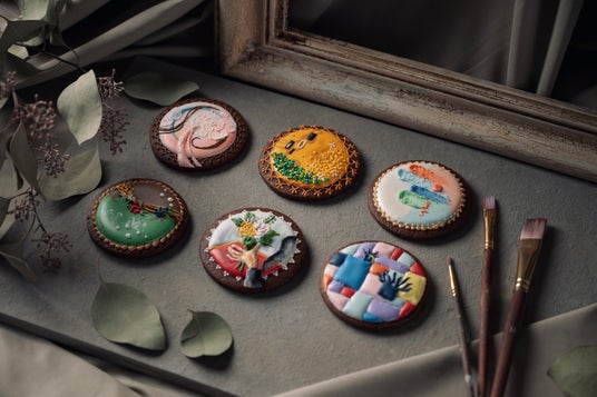 ドリンクと同じ絵画をモチーフにしたアイシングクッキー。本店にてひとつひとつ手作業で製作しています。額縁模様の化粧箱と併せて販売していただけます。