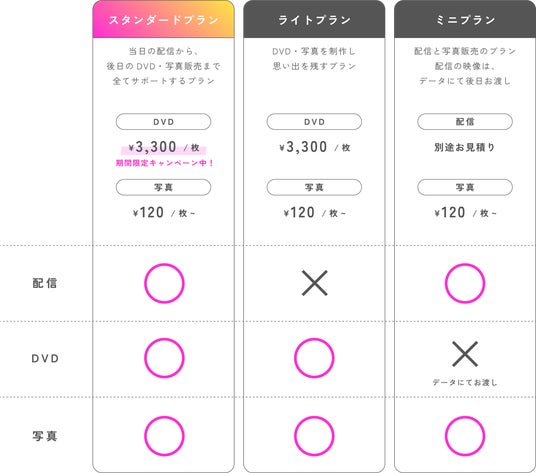 内容:配信+DVD+写真特徴:すべてをまとめてサポート