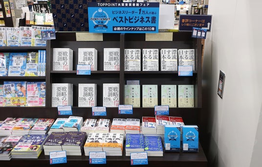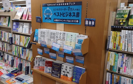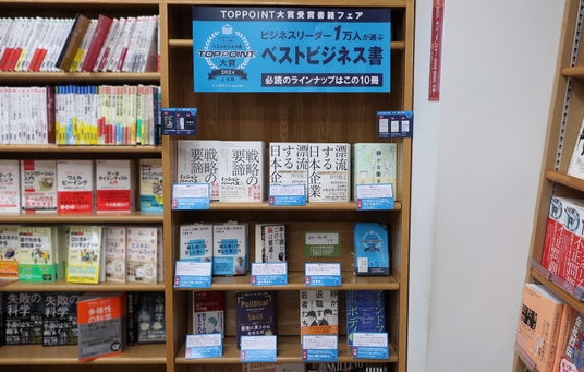 本賞の決定に伴い、丸善ジュンク堂書店・文教堂・未来屋書店の主要大型店約50店舗にて「TOPPOINT大賞受賞書籍フェア」を開催します。フェアでは、ベスト10冊に選ばれた各書籍を、その書籍の読みどころや読者のコメントを記したPOPと並べて展開。また、大賞を受賞した著者のコメントや本賞の概要を紹介した小冊子(無料)も配布します。