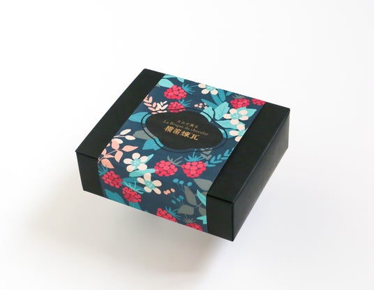 昨年は黒を基調としたシックで大人な雰囲気の化粧箱で販売しておりましたが、商品の魅力が伝わりにくかったという反省点を踏まえ、華やかな「花柄掛け紙」をお付けした商品パッケージを採用。ラズベリーの花や木の実のイラストを加え可愛らしく、どなたにでも手に取っていただきやすいデザインにリニューアルしました。