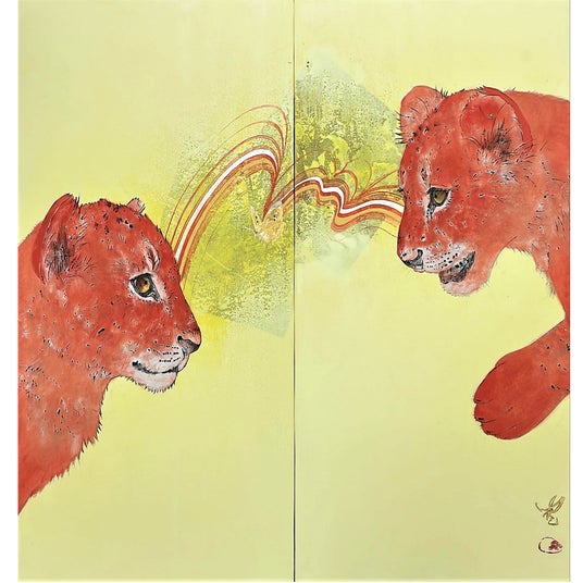 東京藝術大学大学院にて博士号(美術)を取得後、院展での奨励賞のほか、個展やグループ展に参加するなど、ますますその活動の場を広げています。近年、好評を得ている彩り豊かな『ライオン』の作品を中心に、動物や花などの作品をご紹介します。