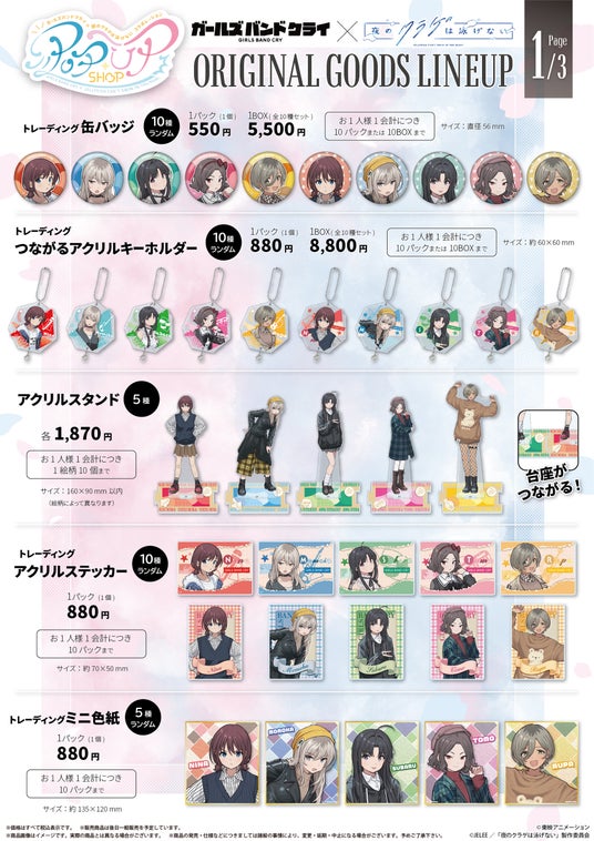 2024年4月に放送されたオリジナルTVアニメ「ガールズバンドクライ」と「夜のクラゲは泳げない」のコラボレーションPOPUP SHOPの開催が決定!
