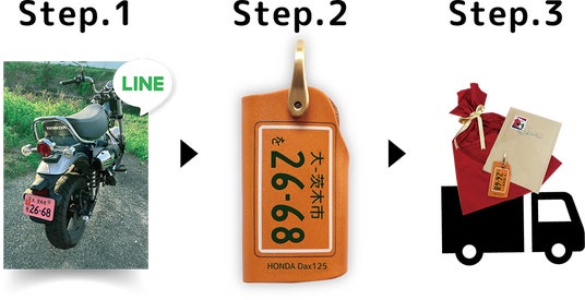 スマホで撮影したナンバープレートの写真をLINEで送信すると、担当デザイナーがその写真をもとにオリジナルデザインを作成します。