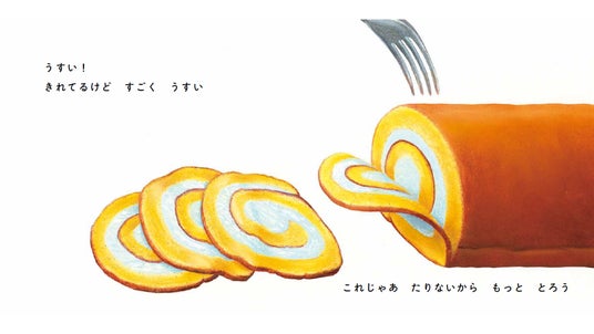 とってもリアルなロールケーキの絵に誘われて、ページをめくると想像を超える展開が……。